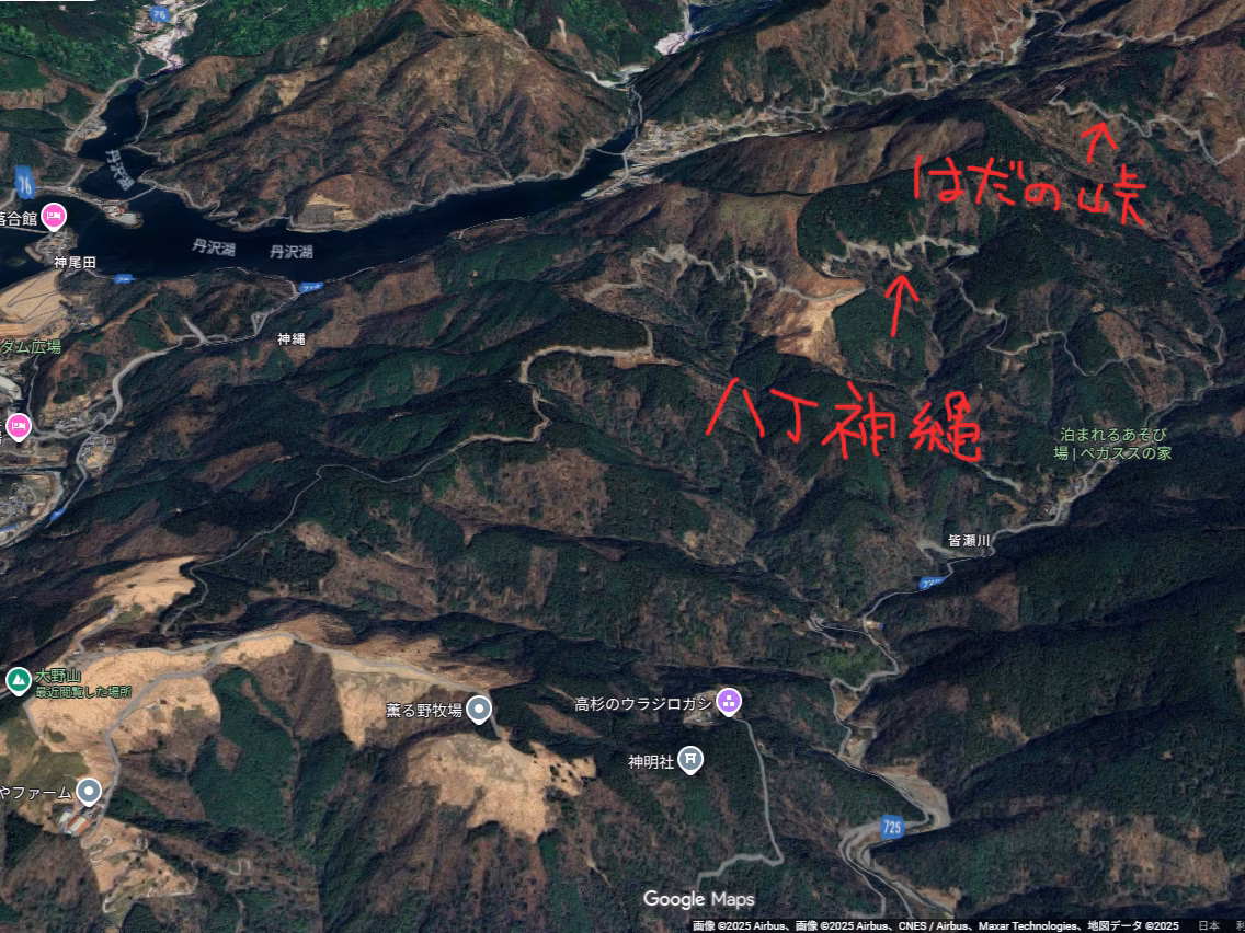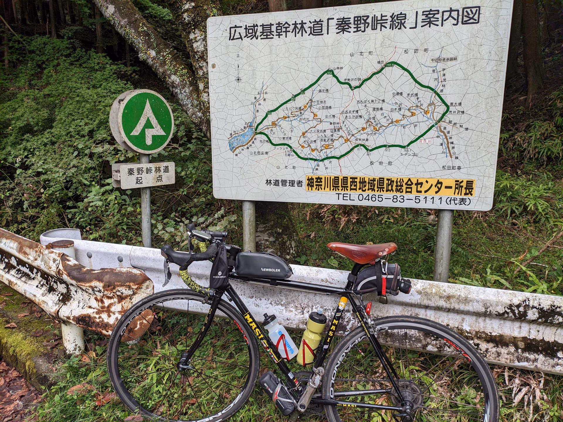 県西にはあまり行かないので、ついでに近くの有名ヒルクラスポット大野山と、そこからダウンヒルする未舗装の八丁神縄林道にも足跡を残しに行きます。ちょうど秦野峠林道の山ひとつ反対側にある林道です。