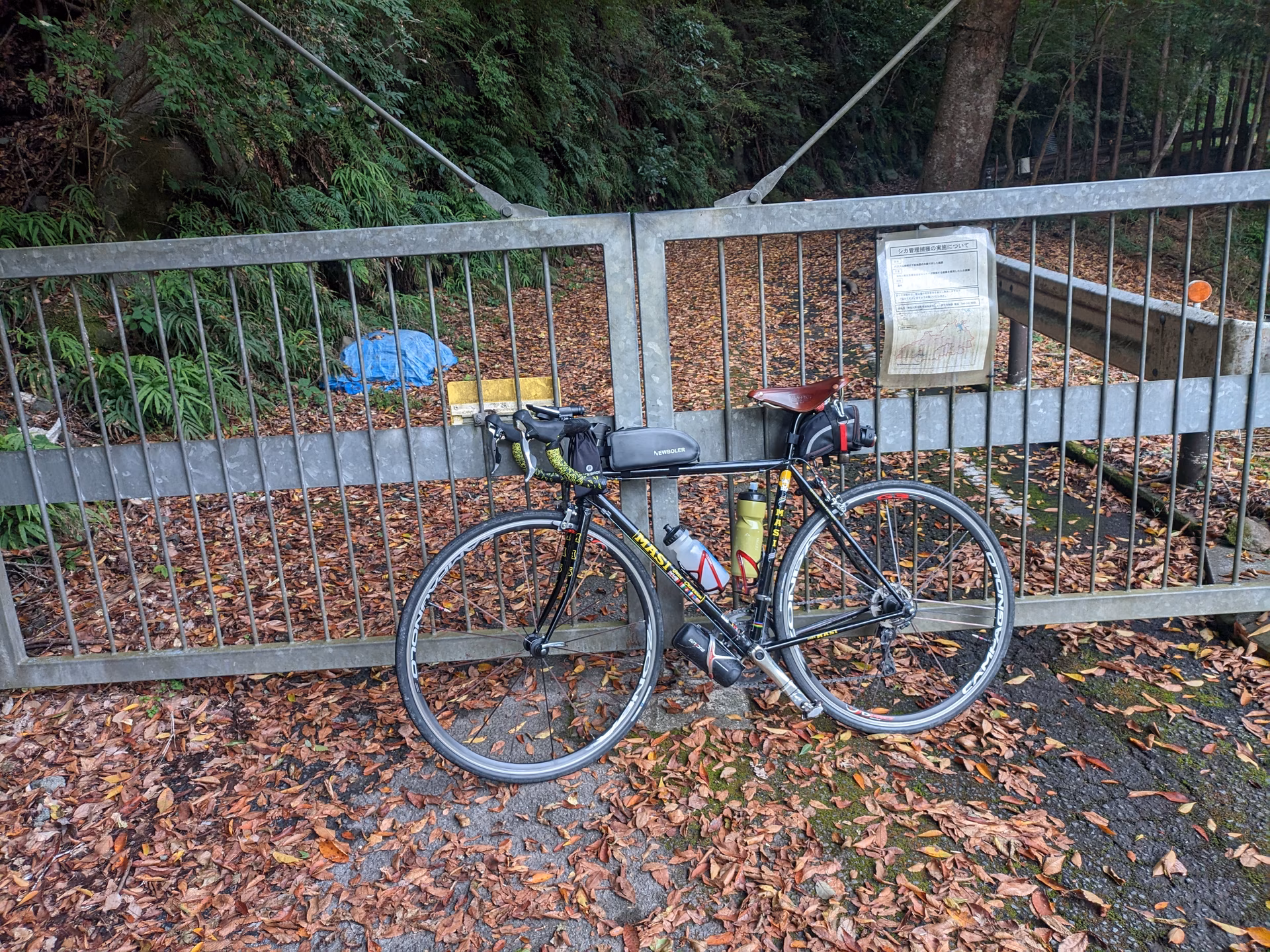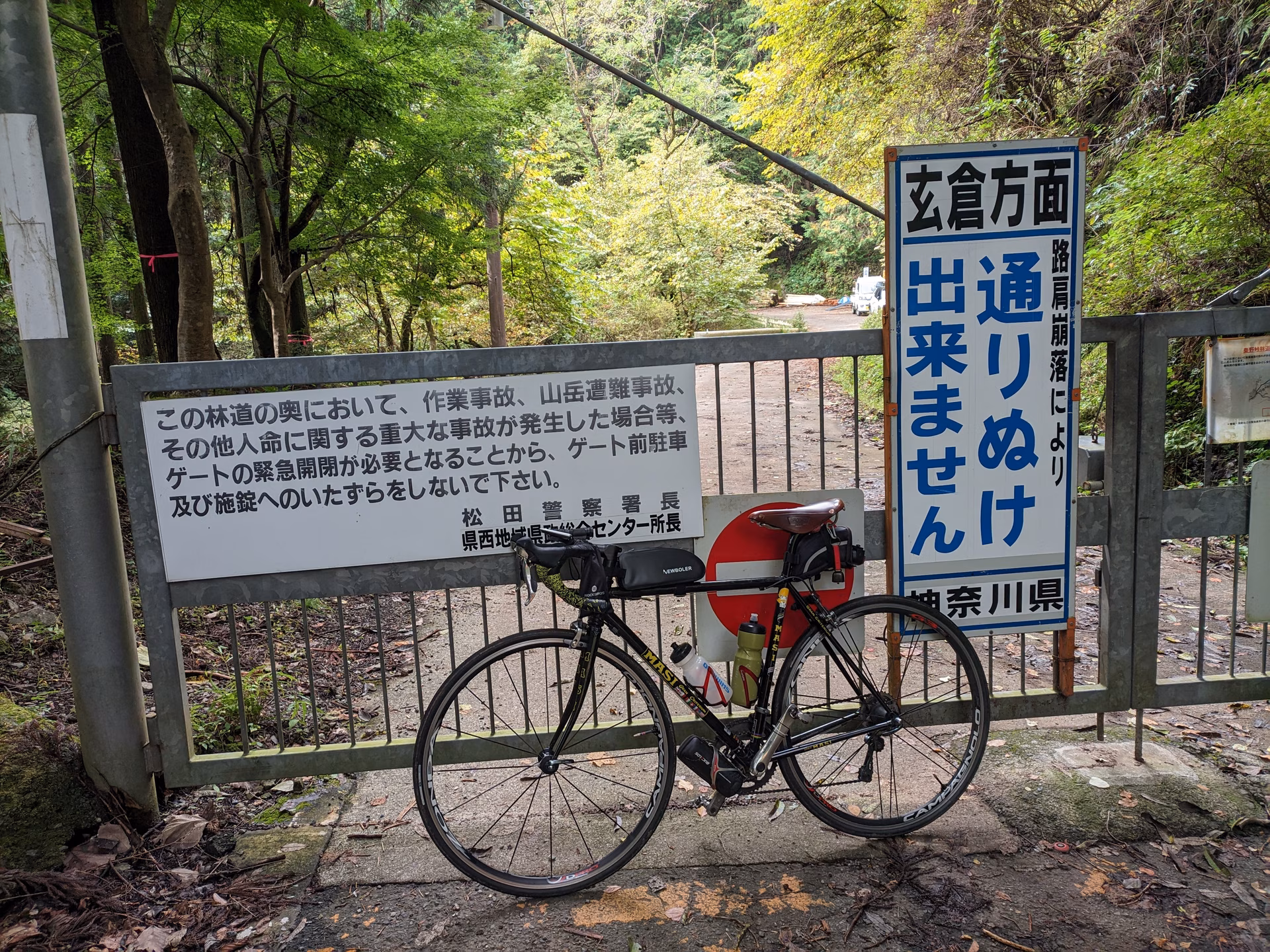 水ノ木幹線林道は明神峠まで繋がる楽しそうな林道ですが、ゲートに自転車事故多発のため自転車侵入禁止と大きく明示されているので、さすがに入るのが躊躇われます。