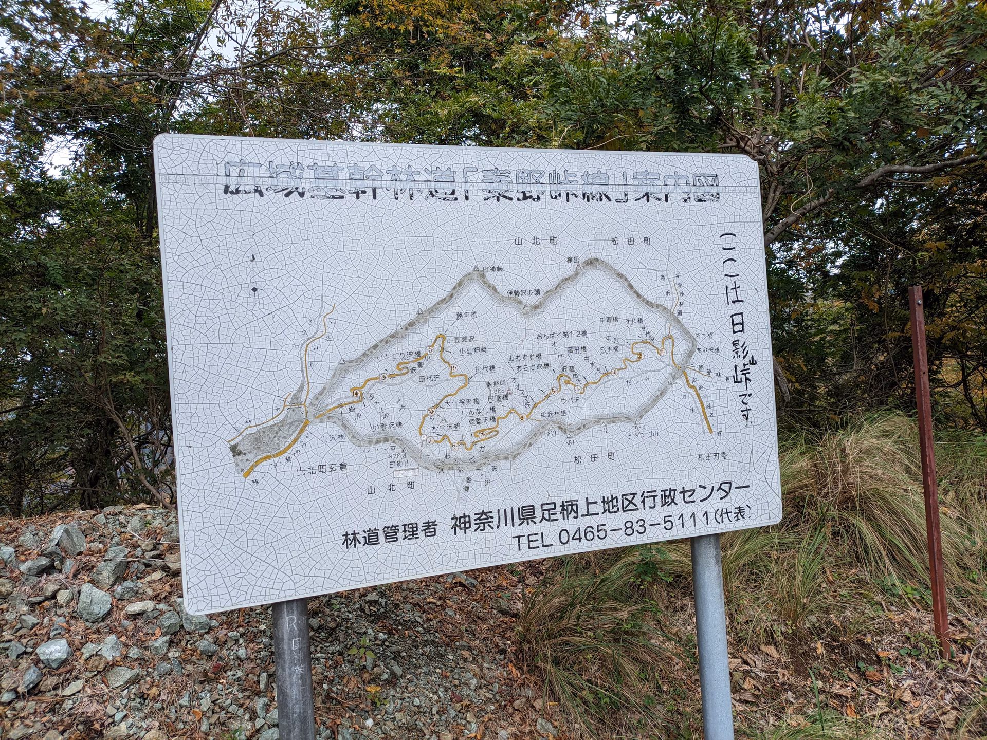 踏破した記事を見るとみな何故か世附林道と呼んでいますが、多分違う。OSMでの表記を見ると水ノ木幹線林道だし、神奈川県公式ページを見ても世附林道は丹沢湖畔の林道と記載されていたので、やっぱり違うはず。