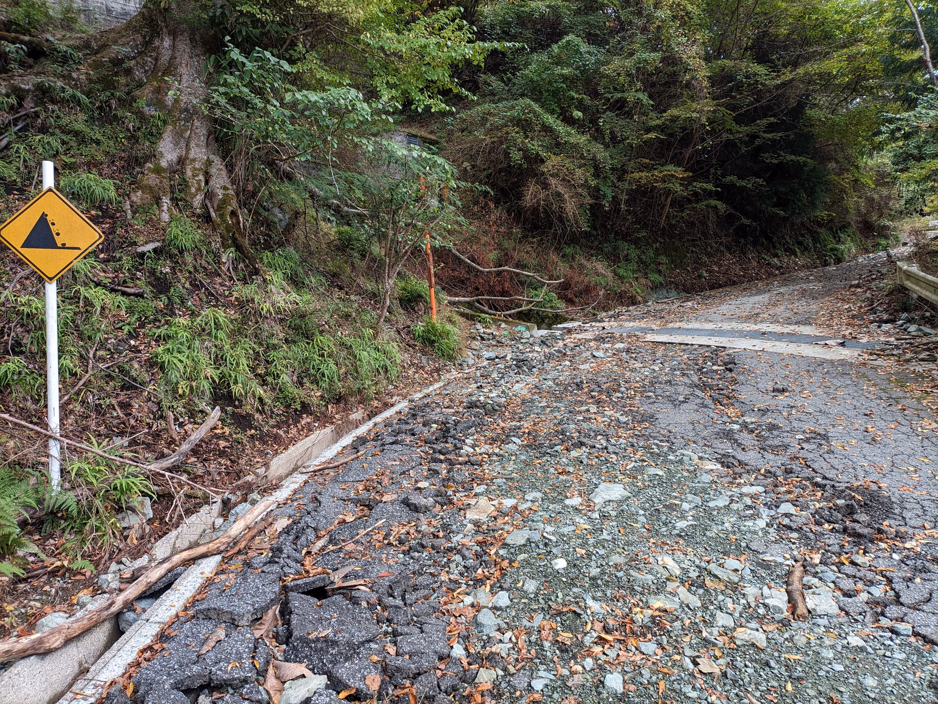 ここが直前の崩落復旧区間かな?