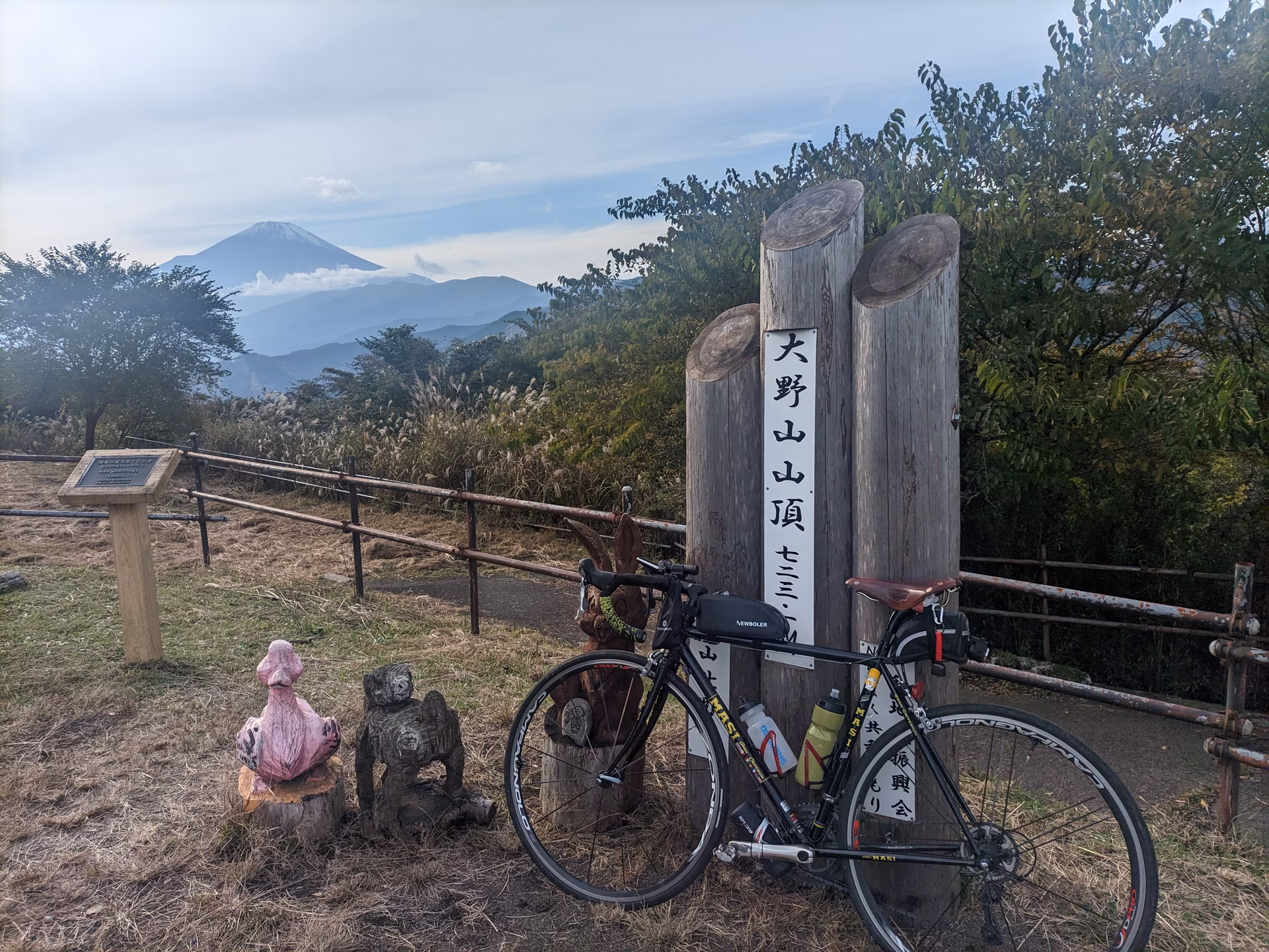 丹沢湖を下って激坂ヒルクライムをすると大野山山頂にたどり着きます(画像略)