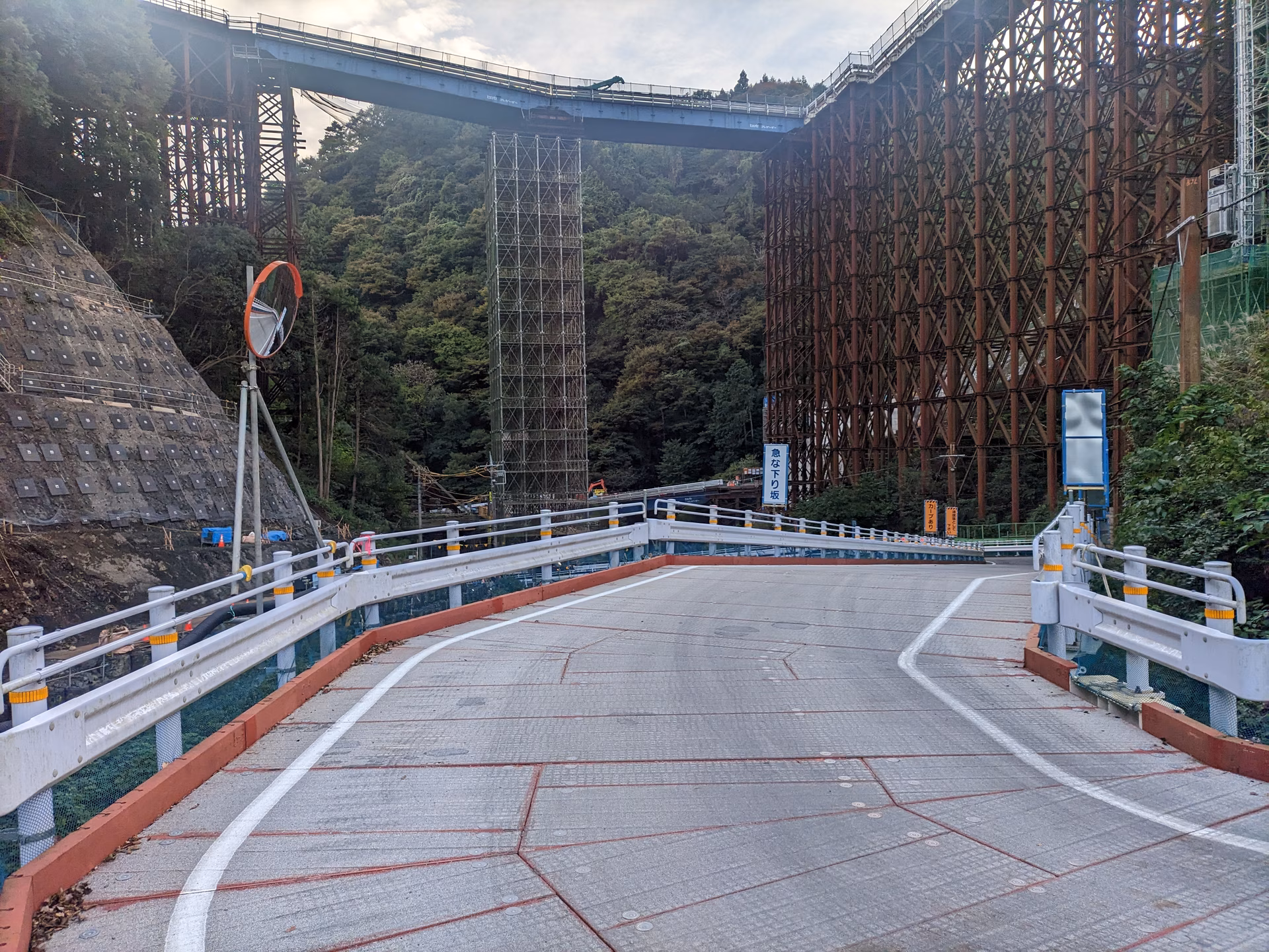 しばらく下ると、新東名に架かる橋が建設中。名は山北天空大橋。