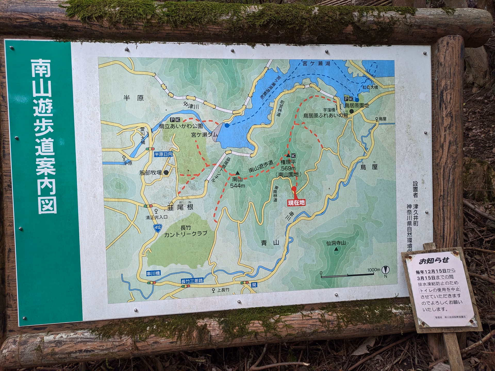 半原越から宮ヶ瀬に下って、湖畔をぐるっと回った先の謎のオシャレな住宅街の脇から東南林道へ入れます。