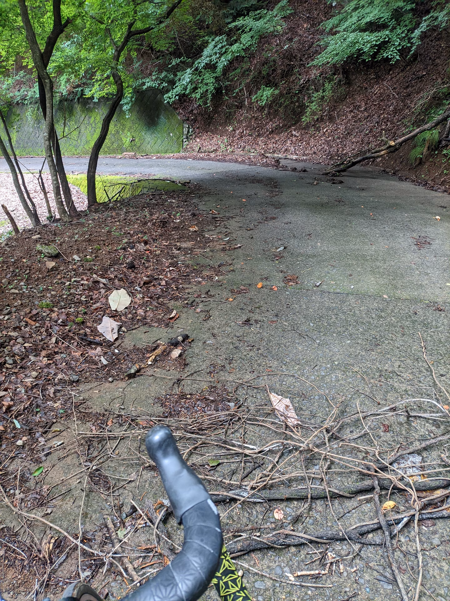 最初から斜度15%がお出迎え。足つきなしチャレンジは早々に失敗しました。