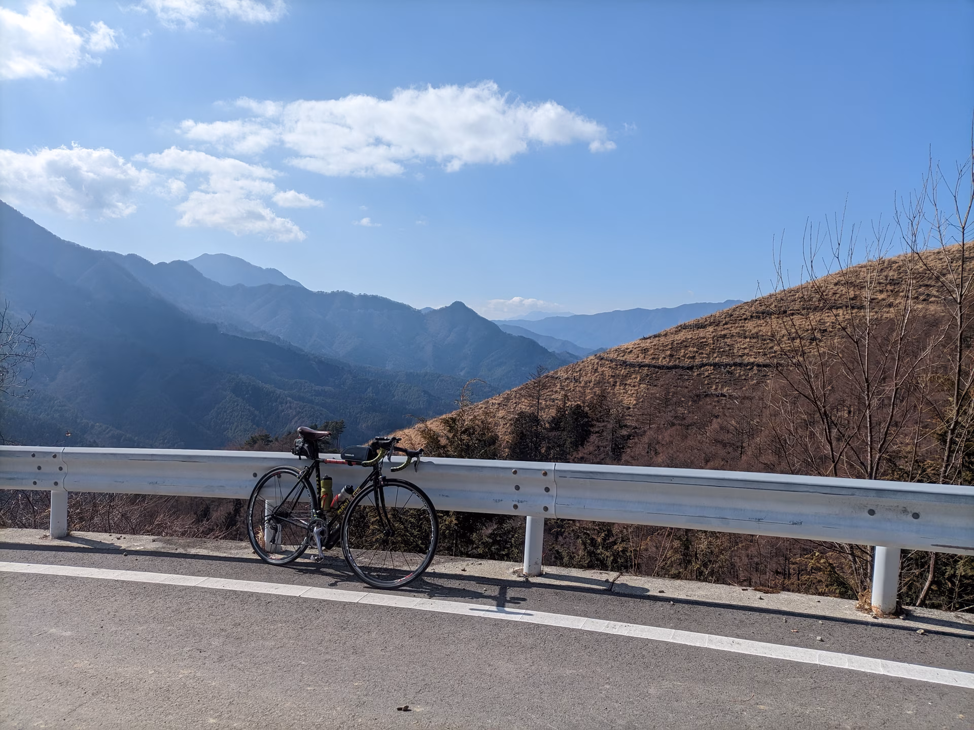 道志村中心部(どこ?)から道坂峠へ。5kmで標高700mから頂上の1000mへUPします。平均8%程度の地味に堪える坂です。